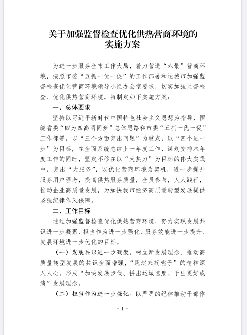 關(guān)于加強(qiáng)監(jiān)督檢查優(yōu)化供熱營(yíng)商環(huán)境的實(shí)施方案