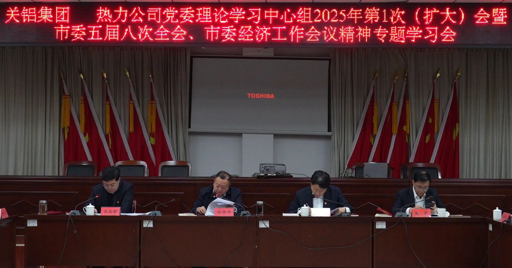 1月14日上午,公司聯(lián)合關(guān)鋁集團(tuán)召開(kāi)黨委理論學(xué)習(xí)中心組2025年第1次(擴(kuò)大)會(huì)暨市委五屆八次全會(huì)、市委經(jīng)濟(jì)工作會(huì)議精神專(zhuān)題學(xué)習(xí)會(huì)。黨委書(shū)記、董事長(zhǎng)杜偉師主持,關(guān)鋁集團(tuán)、熱力公司領(lǐng)導(dǎo)班子成員,各黨支部書(shū)記、各黨支部委員,中層正職及部門(mén)負(fù)責(zé)人,部分黨員及職工代表參加會(huì)議。