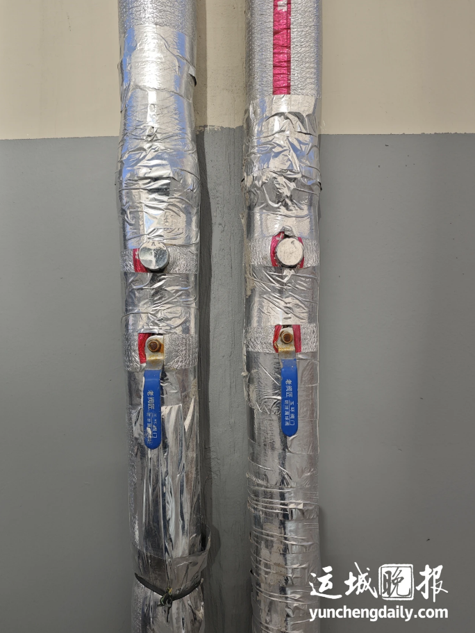 ▲單元樓外新安裝的供熱管網(wǎng)