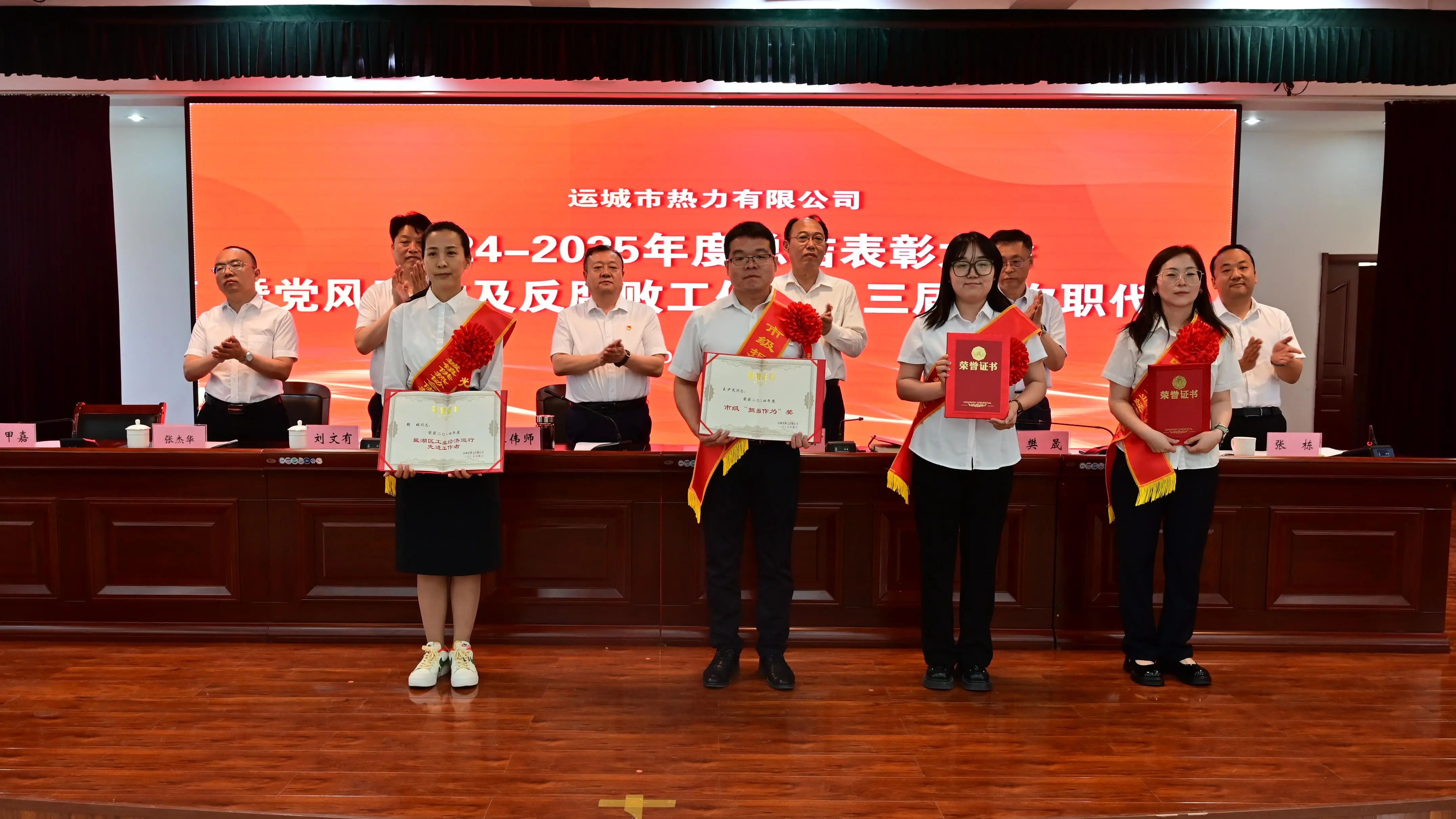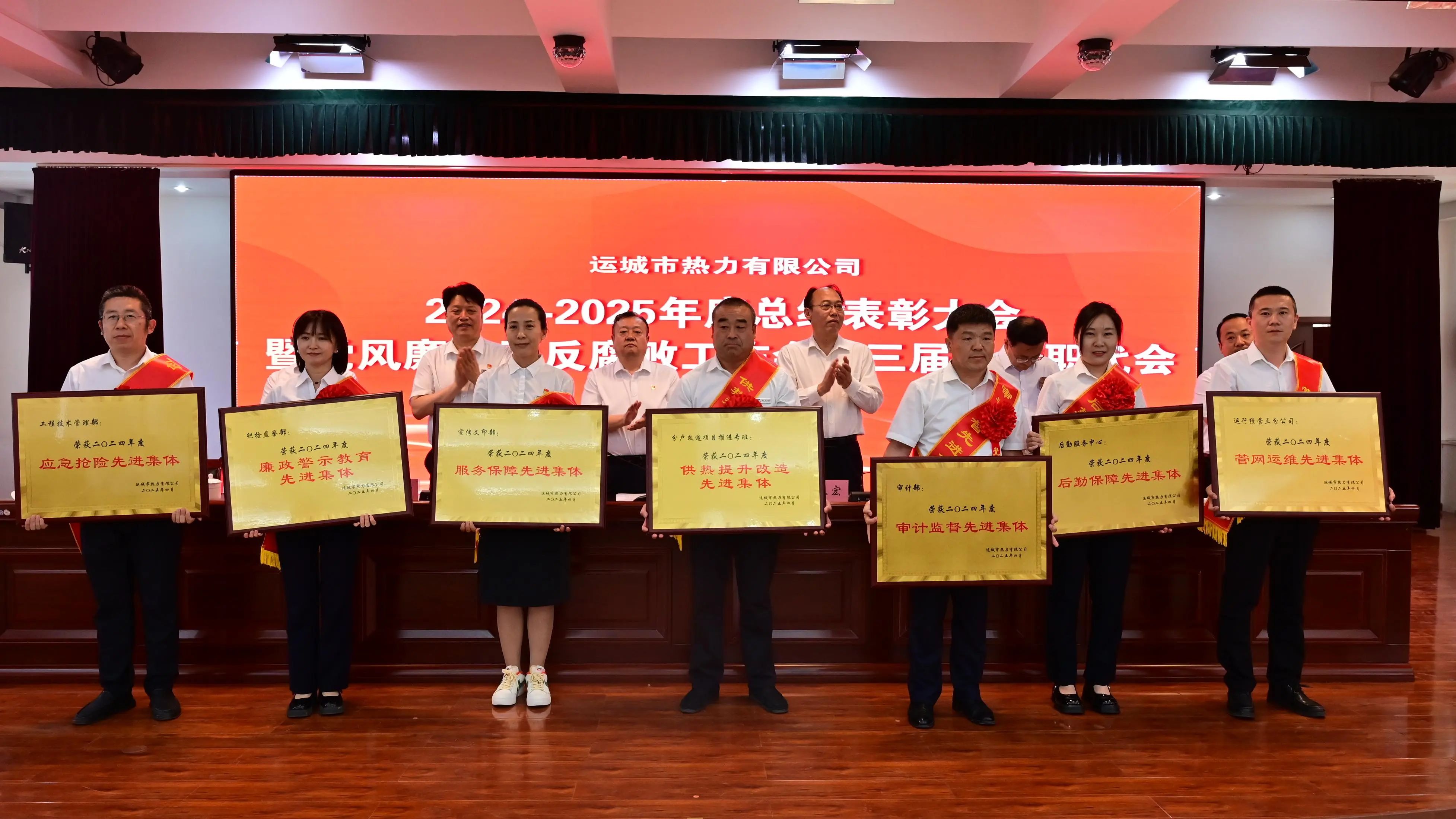 會上,黨委副書記、總經(jīng)理劉文有作了公司2024年度工作報告;黨委委員、紀委書記張棟同志作了公司2024年度黨風廉政及反腐敗工作報告。黨委委員、副總經(jīng)理席甲嘉宣讀了《運城市中心城區(qū)集中供熱保障領導組關于表彰2024年度優(yōu)秀合作單位的通知》《運城市熱力有限公司關于2024年度公司團體及個人榮獲上級單位表彰情況的通報》《運城市熱力有限公司關于表彰2024-2025年度優(yōu)秀集體及先進個人的通知》,并組織頒獎;會議對6個優(yōu)秀合作單位、12個團體獎、7個團體專項獎、6個優(yōu)秀班組以及47名優(yōu)秀個人進行了表彰。