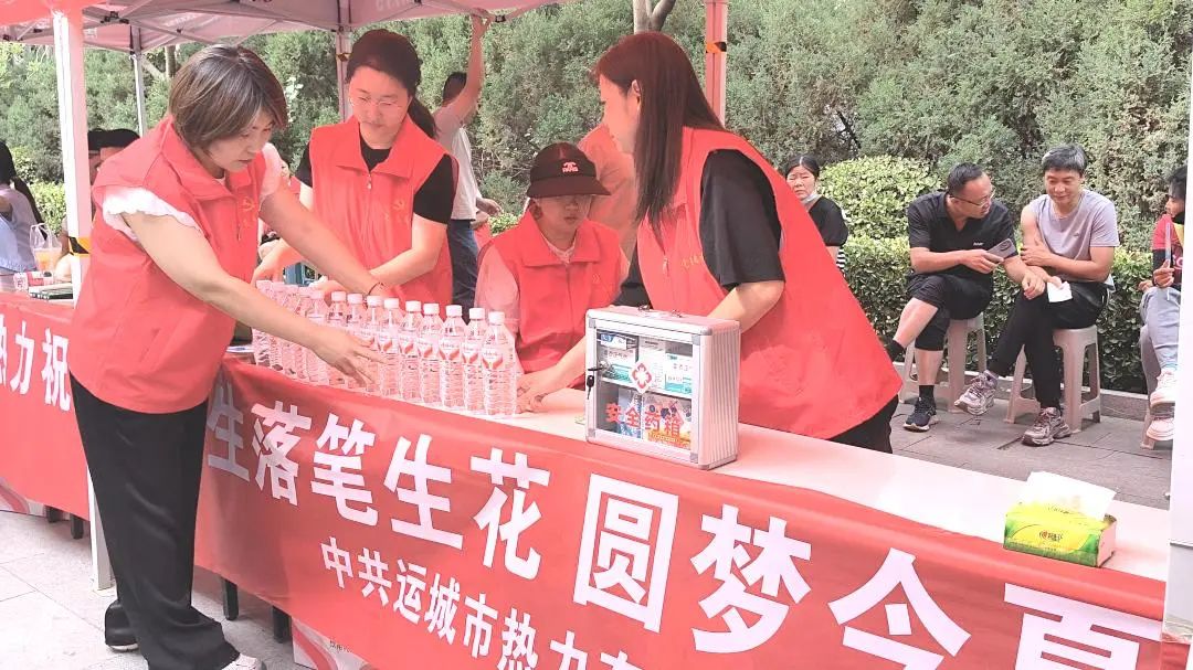 6月7日清晨7時,天光微亮,公司黨員志愿者們已在康杰中學(xué)考點周邊搭建起“熱力愛心服務(wù)站”的紅色帳篷。帳篷上“運城熱力祝所有考生落筆生花 圓夢今夏”的標(biāo)語格外醒目,與黨員們身上的紅色志愿服務(wù)馬甲相互輝映,成為考場外一道溫暖的風(fēng)景線。現(xiàn)場精心設(shè)置“物資保障區(qū)”“家長休息區(qū)”,準(zhǔn)備了1500瓶礦泉水、20套板凳以及防暑藥品,每一處細節(jié)都承載著對考生和家長的深切關(guān)懷。